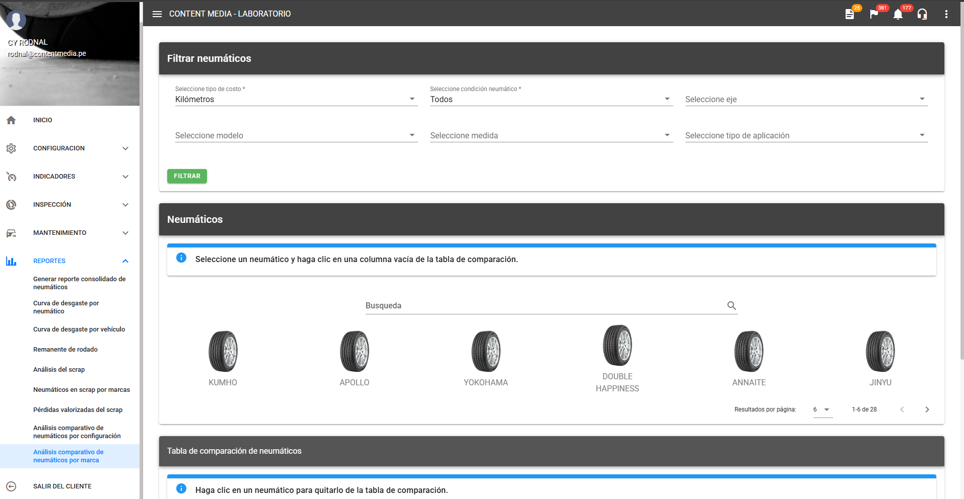 - Luego a la opción de Análisis comparativo de neumáticos por marca